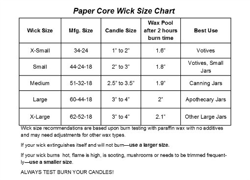 Paper Core Wicks are for use in: Paraffin Wax Soy Wax Hybrid Wax (Par/Veg.) Beeswax
